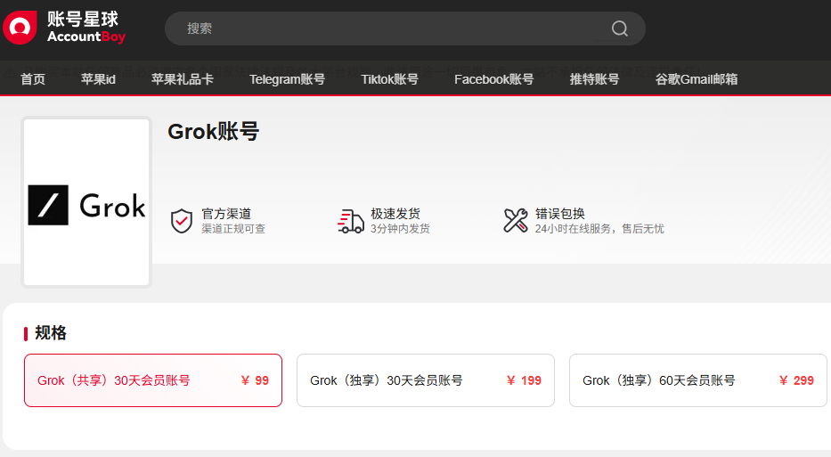 为了保障账号安全与使用体验,建议通过正规第三方平台购买。目前在支持 Grok会员共享账号购买的平台中,账号星球(AccountBoy) 提供了相对稳定的服务。平台提供多种会员版本可选,包括 Super Grok 共享账号与个人专享账号。其中,Grok共享会员账号为4人共享模式,价格相对灵活,支持多币种支付,方便不同地区用户购买使用。同时,平台配备有完善的售后客服,可在账号登录、使用过程中提供及时的支持与问题处理。